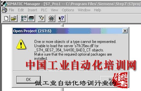 有的时候您在打开某些项目中的对象时,STEP7会弹出报错窗口,错误信息为 ’*.dll’文件无法被装载,代码是257:5,界面如下: