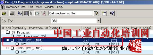 答:从诊断缓冲区故障描述可以看到该故障是由循环中断OB34触发,打开项目交叉索引查看程序结构如图2,OB34和OB35中都调用了FC1,而FC1需要使用512字节的本地数据区,这些本地数据区由调用OB动态分配。项目中OB34和OB35所需使用的最大本地数据为534字节。